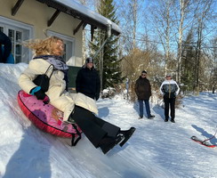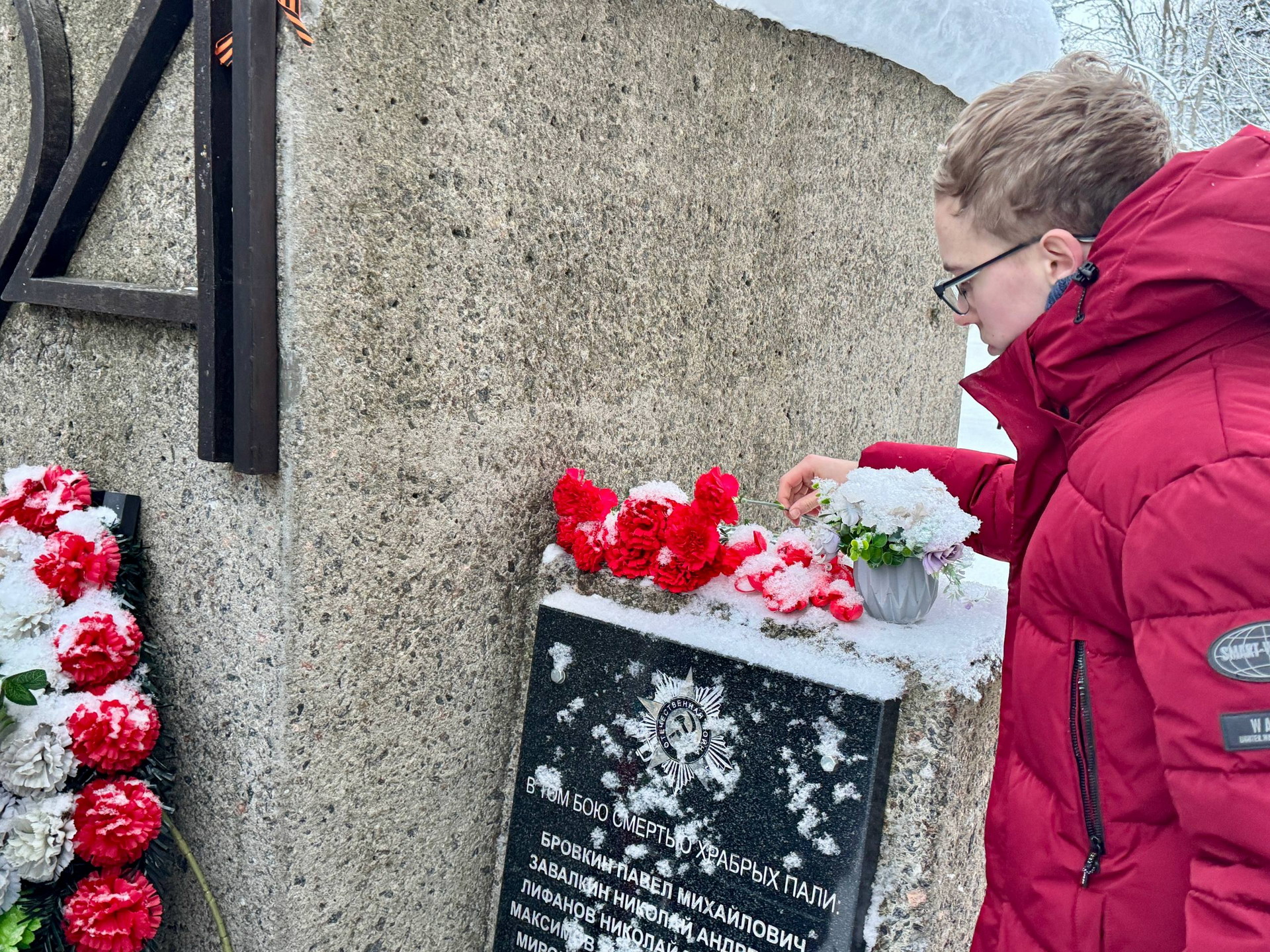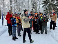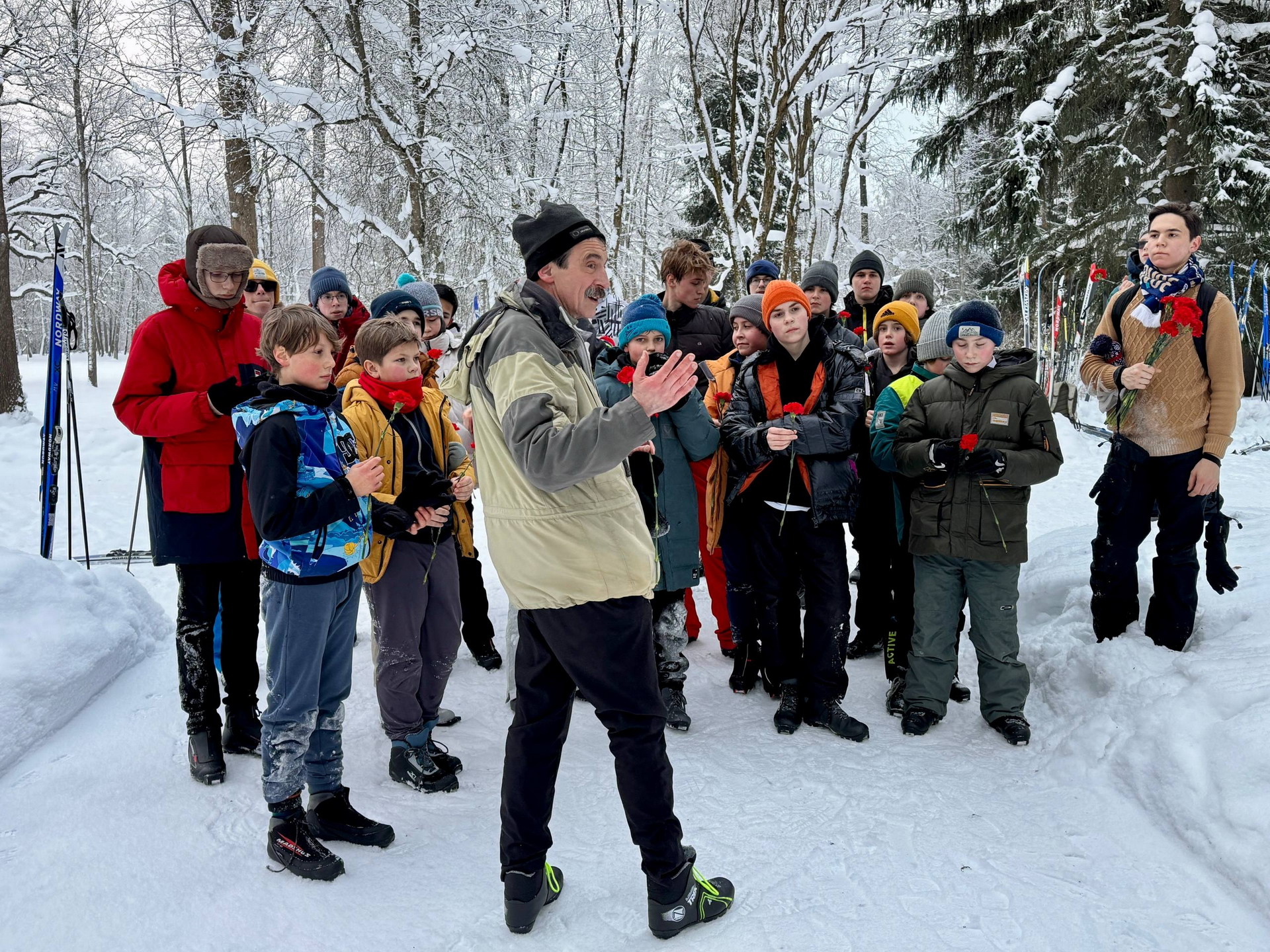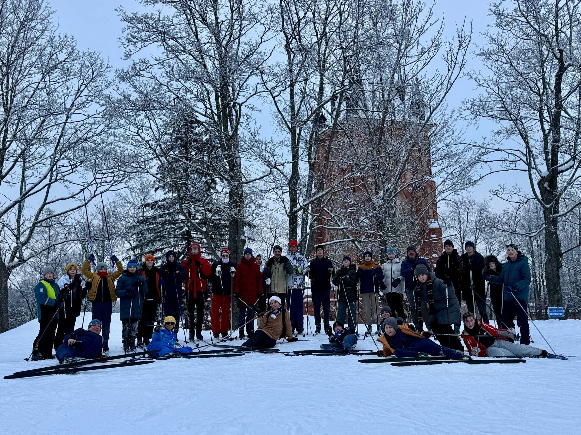 Ученики нашей школы вместе с учителями отправились на лыжную прогулку по Баболовскому парку. Маршрут был выбран неслучайно: его целью стал памятник 76-му и 77-му истребительным батальонам НКВД, сформированным в годы Великой Отечественной войны из добровольцев, во многом ровесников наших старшеклассников.